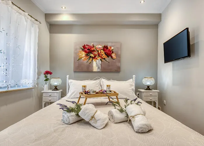 Die Ferienwohnung Piccolo Tesoro Corfu liegt im Zentrum von Corfu. Rund 25 Gehminuten von hier entfernt besuchen Sie auf jeden Fall den Palast Mon Repos.